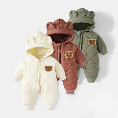 Cartoon Hooded Baby Romper – Winter Warm Jumpsuit (0–12M)